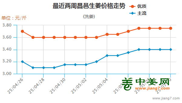 图一 2025年第19周昌邑生姜价格走势图